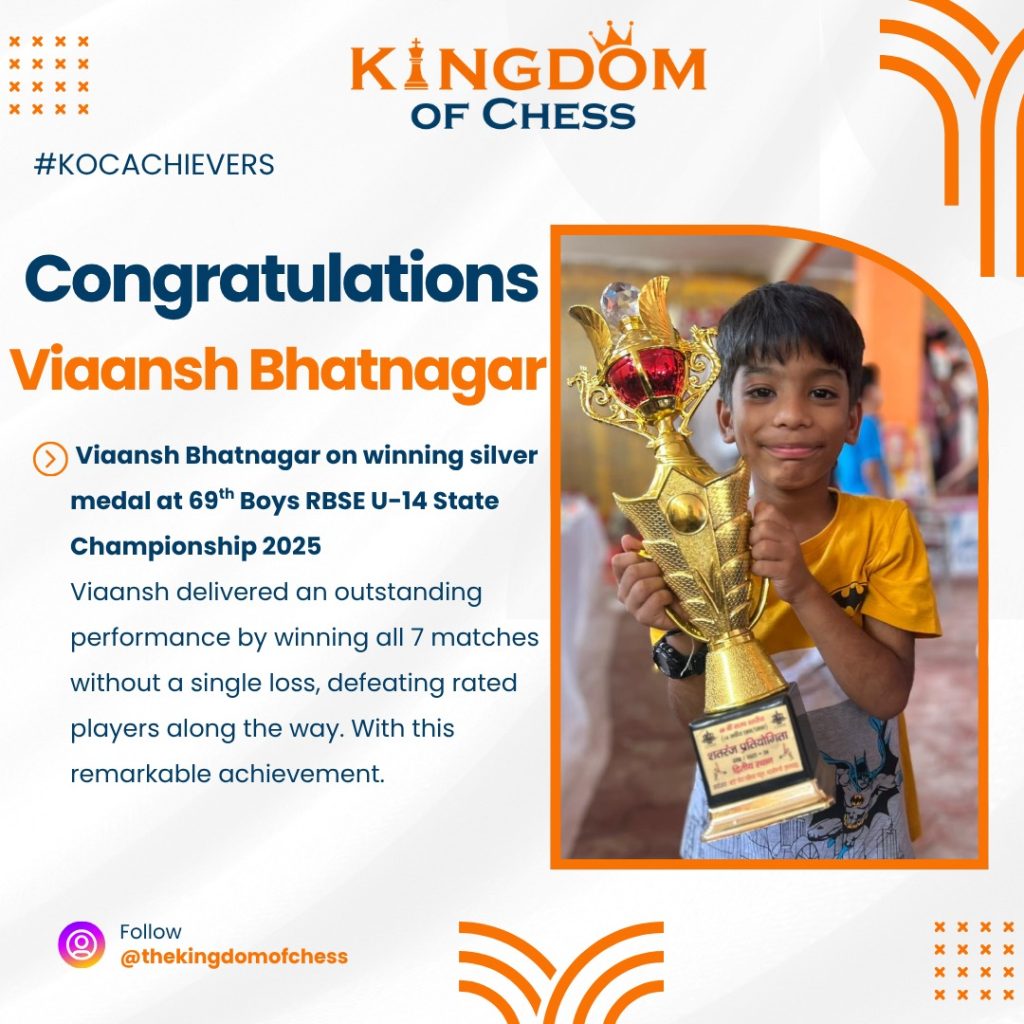 Success stories like that of Viaansh Bhatnagar remind us that excellence is built through patience, practice, and the right mentorship. His victory at the RBSE State U-14 Championship 2025 is not just a personal milestone but also a proud moment for the entire Kingdom of Chess community.