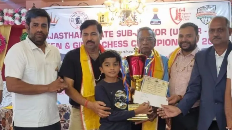 Udaipur’s 11-year-old prodigy, Rishaan Jain, has done it again! The young talent from Kingdom of Chess emerged as the Champion of the Under-15 Rajasthan State Sub-Junior Open Chess Championship 2025, held recently in Alwar.
